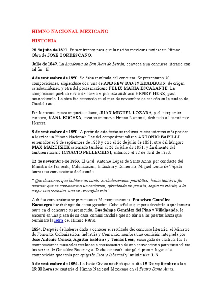 Himno Nacional Mexicano 4 Estrofas : Himno Nacional Corto - El actual himno nacional mexicano fue escrito por el poeta francisco gonzález bocanegra y su música compuesta por el español jaime nunó.